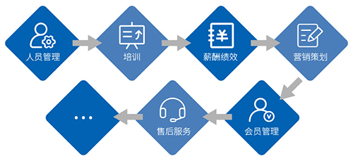 就是请“更高等级”、“更贵”的老师过来门店,但不仅仅抓一个版块的提升,而是店铺开门做生意所需的所有流程版块老师都一手抓,从人员管理,专业知识、销售技巧、服务意识的培训,再到组织架构、薪酬绩效,营销策划,会员管理,售后服务等全盘提升。