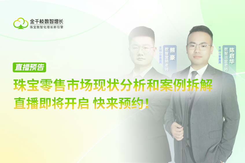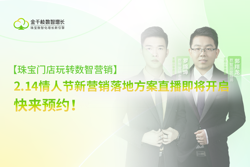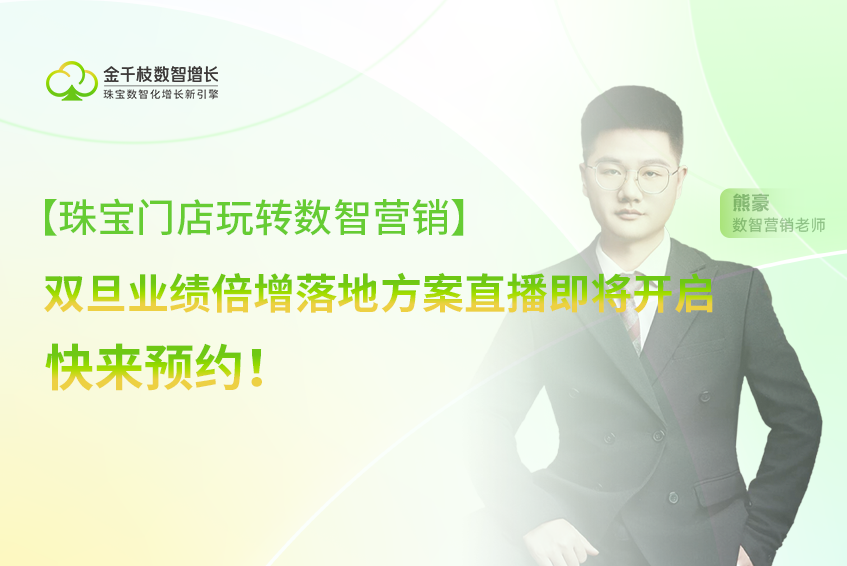 珠宝门店如何玩转数智营销,实现双旦业绩增长? 12月12日(本周五)晚19:30,数智营销老师熊豪在线分享实战落地方案,带你告别粗放营销,精准锁定高价值客群!